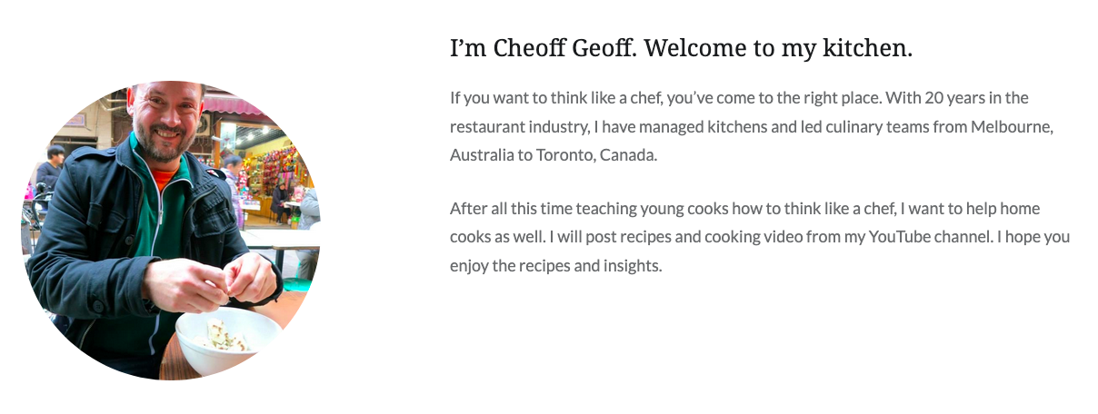 I created the brand and digital footprint for culinary expert, Cheoff Geoff. Beginning with brand building exercises, I worked with Cheoff Geoff to discover his why: to mentor other to succeed. We then worked with a graphic designer to solidify a logo and brand handbook. I also personally developed Cheoff Geoff’s website and blog, YouTube channel, and Instagram profile.